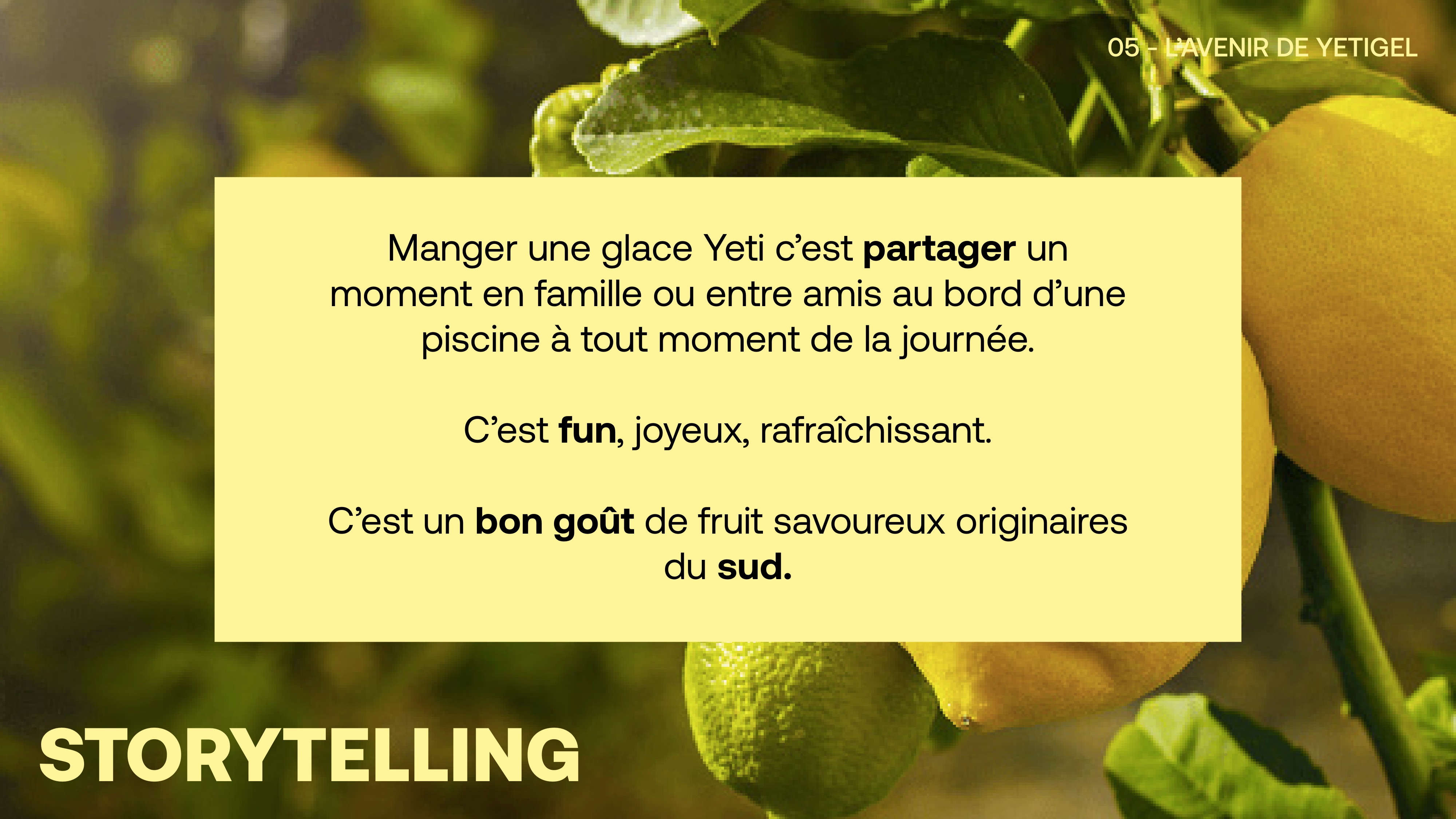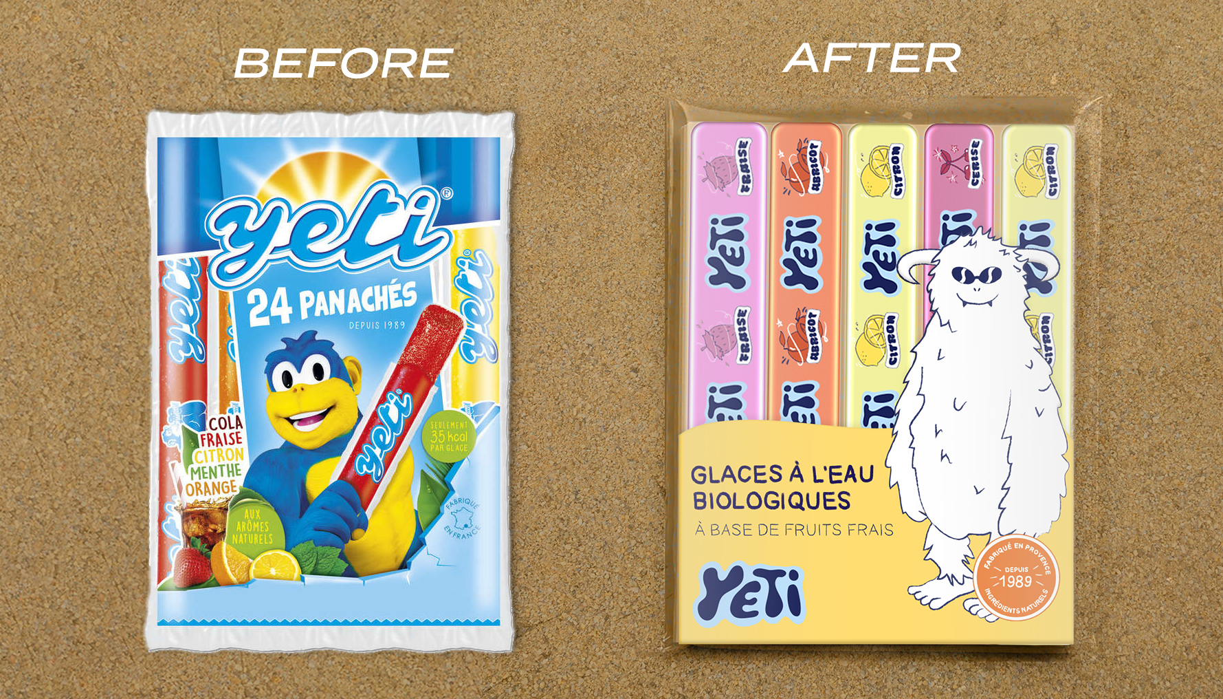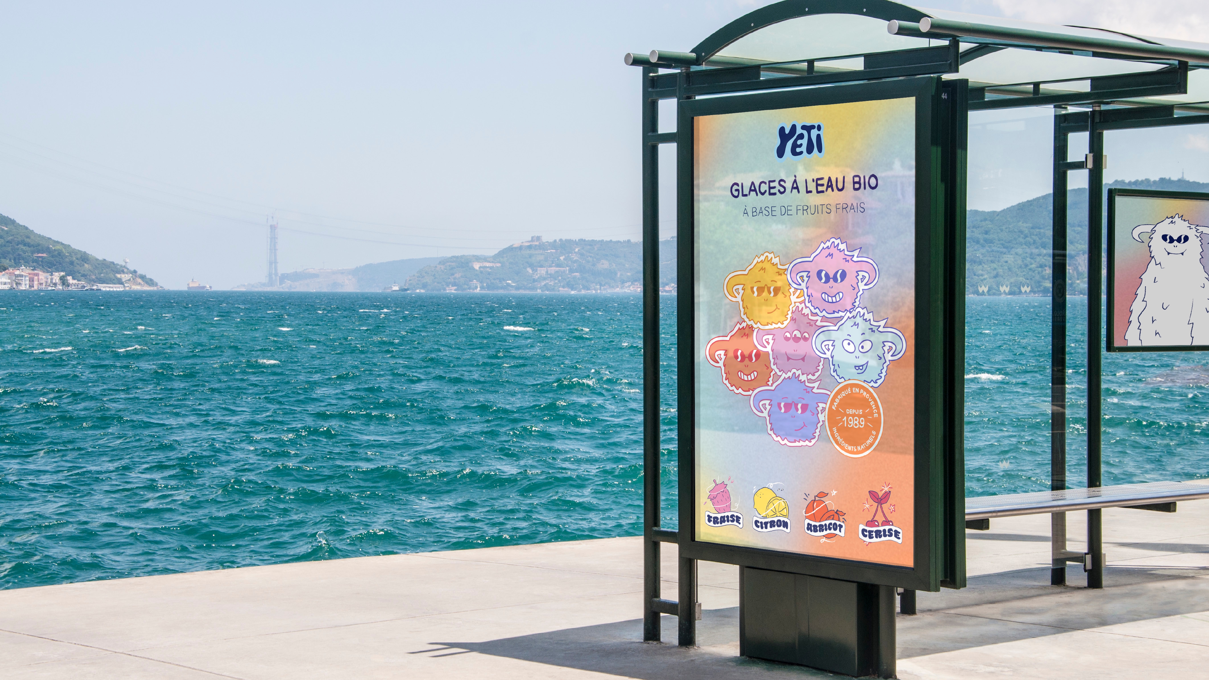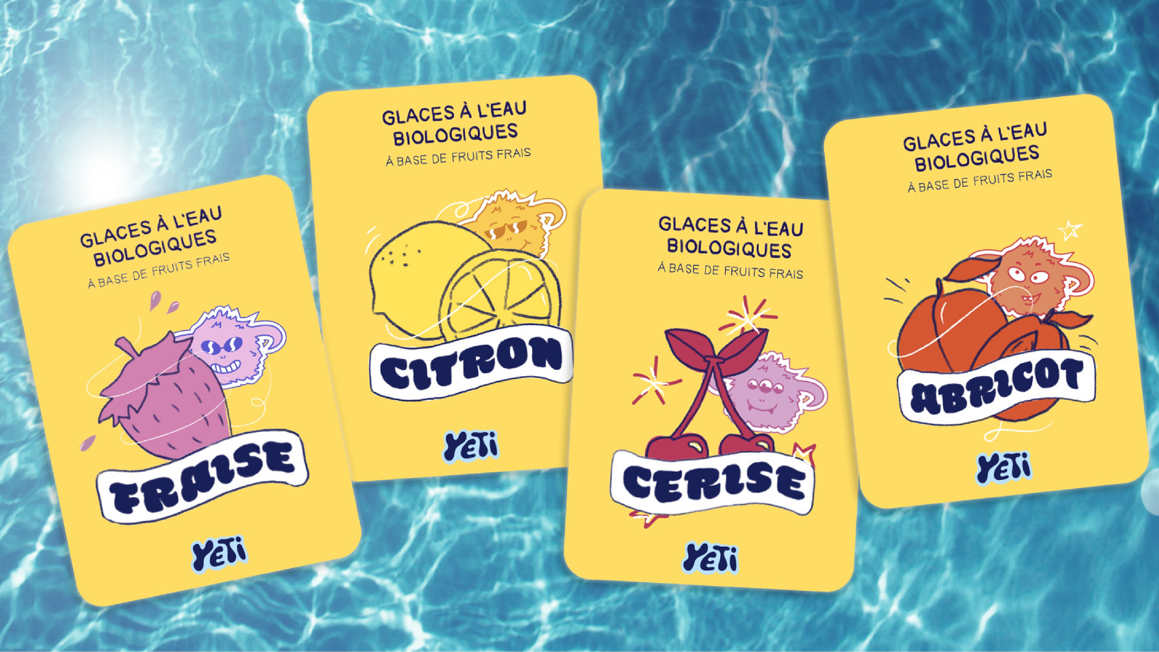 For this, I chose the French popsicle brand Yetigel. I first started by doing a marketing study to analyze the brand's context as well as possible, taking into account its pillars and values in order to make it evolve and create an identity corresponding to the brand.